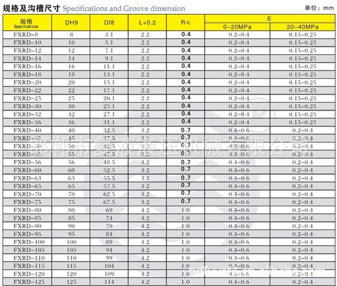 | 截面形狀:溝槽 | 使用壓力:40~100(MPa) | 使用溫度:-40~250(℃) |